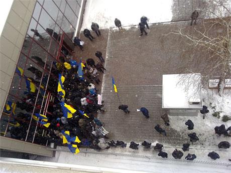 Представництво ЄС в Україні заблокували молодики характерної зовнішності, яких називають "тітушками".