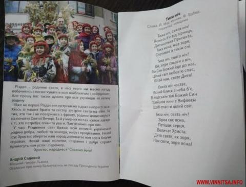У Вінницькій області активісти політичної партії «Об’єднання «Самопоміч» роздавали брошуру з колядками та агітацією.
