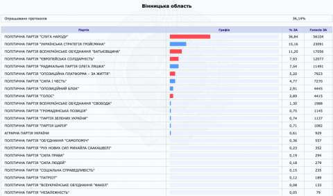 На Вінниччині лідирує “Слуга народу” та “Українська стратегія Гройсмана”