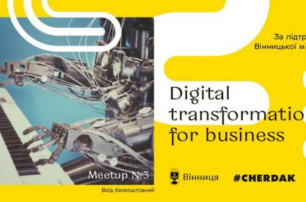 1 жовтня о 17:00 відбудеться третій захід з серії «Meetup для бізнесу у Вінниці» на тему: «Digital transformation for business». До участі запрошують підприємців, які працюють та зареєстровані у Вінниці.