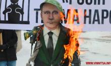 18 березня у Вінниці спалили опудало Володимира Путіна – з гранатою та автоматом у руках.