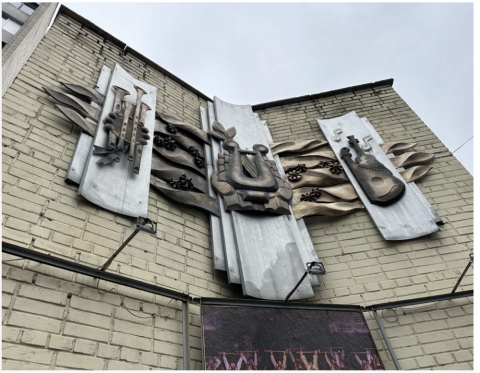 У Вінниці на вулиці Київській збереглася пам’ятка монументального мистецтва «Панно на будівлі адміністративній». Об’єкт є витвором мистецтва 1980-х років і яскравим прикладом відображення у мистецтві місця, в якому він знаходиться. Музичні та природні мотиви лірично підкреслюють функцію установи — «Будинку творчих колективів».